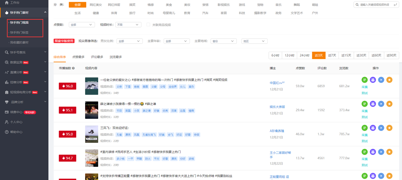飛瓜數據快手版-熱門視頻
