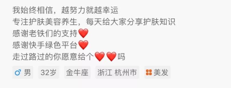 賬號前期定位好快手號昵稱,個人簡介,特別是昵稱需要跟你做的領域有關,這樣能讓目標粉絲很快去關注你的賬號,前期只有粉絲漲的快,發布的作品數據才會提升的快,并且容易熱門。
